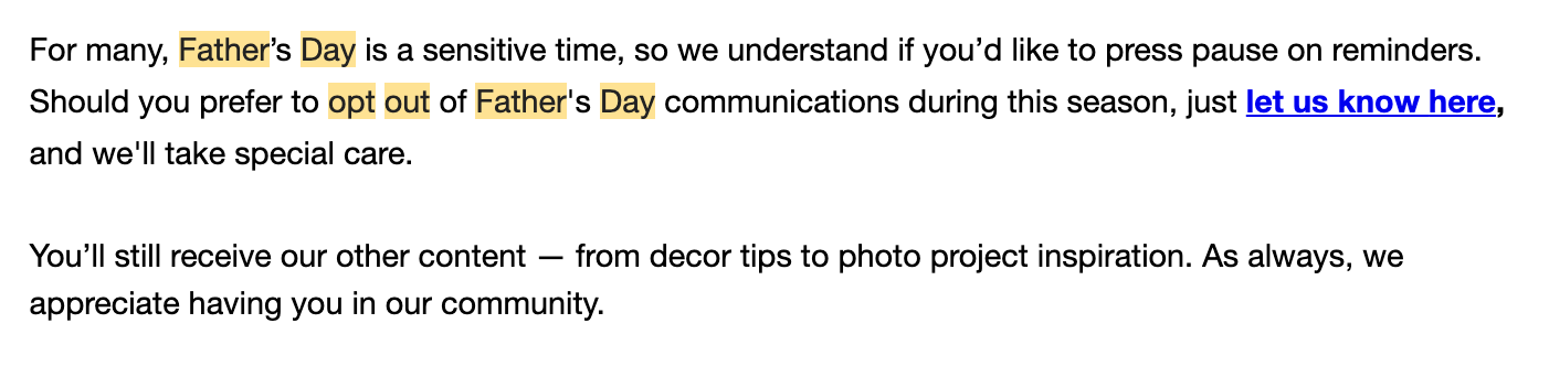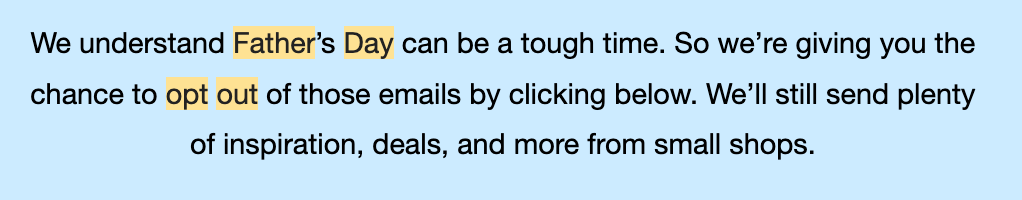 This year, year two of having a dad dead on Father’s Day, the angst came roaring back. I found a new enemy: Brands sending pseudo empathetic opt-out emails.